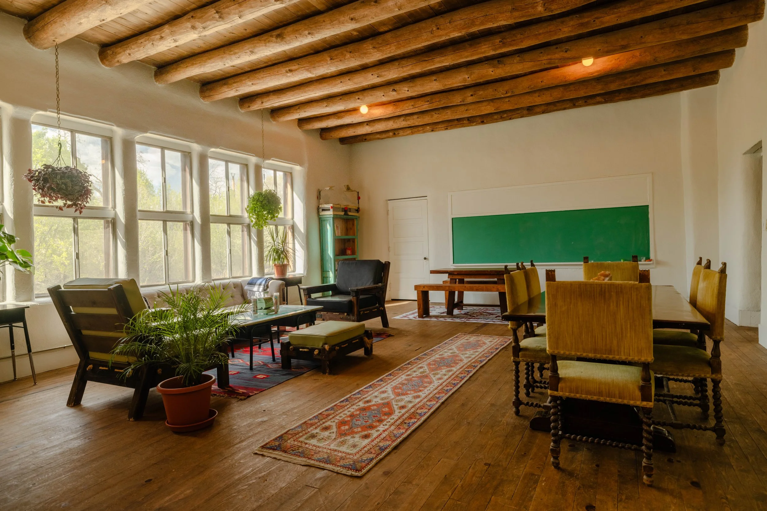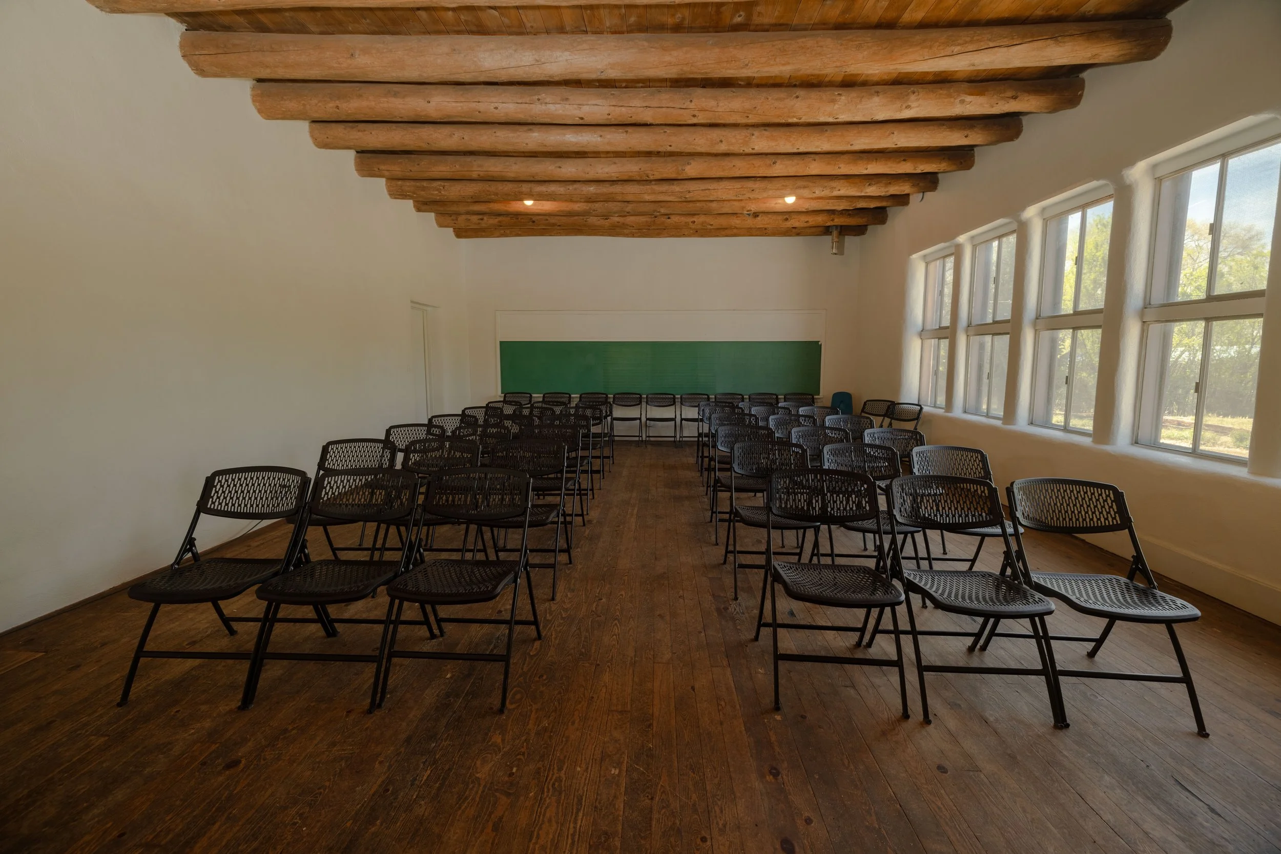 We have open and dedicated desks available in our co-working space, set inside the original classroom building with classic New Mexican architecture. Whether you're a local freelancer or a visiting crew member between shoots, you'll have fast internet, a quiet place to work, and a creative community around you.