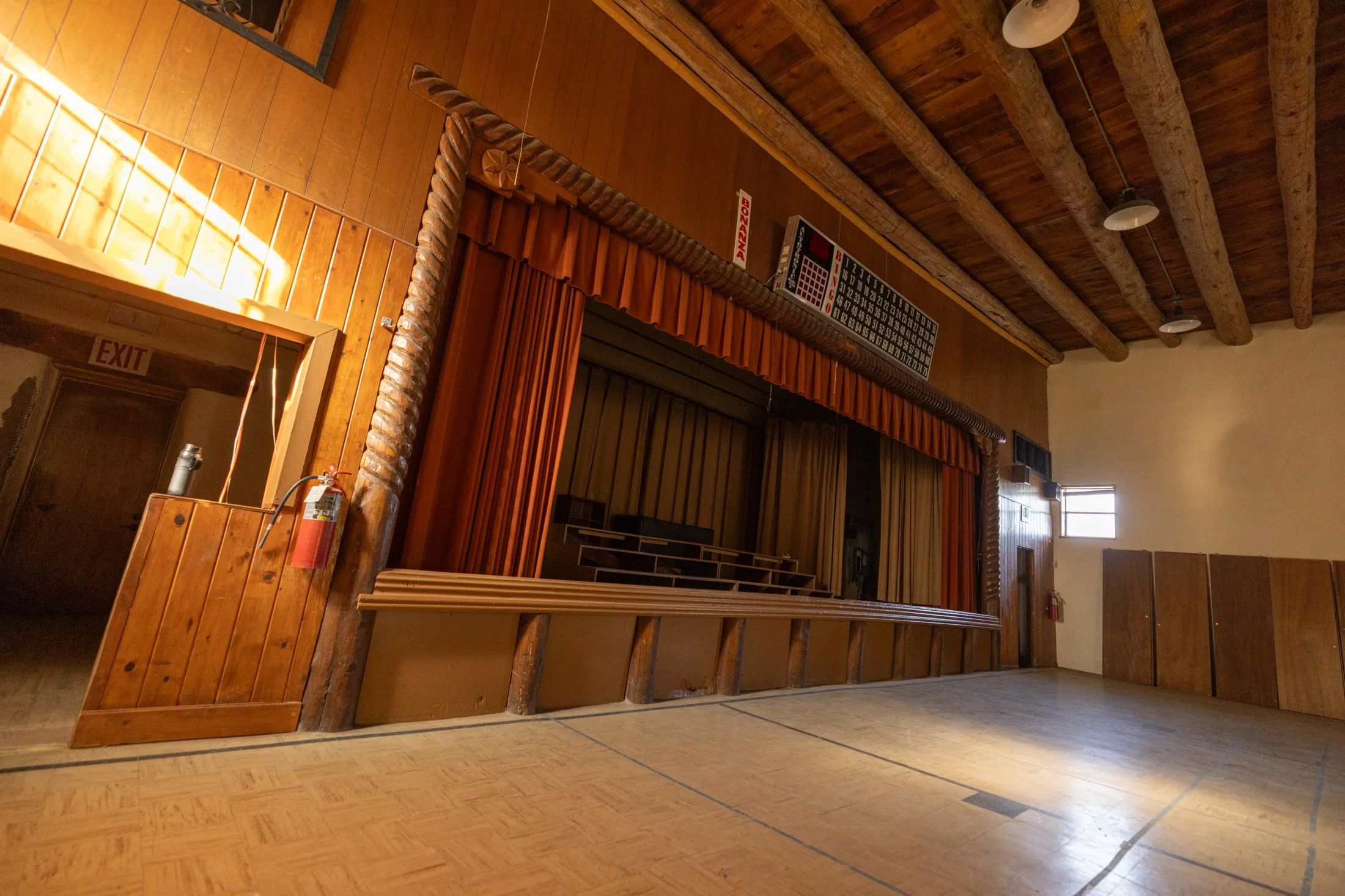 Our 5,500 sqft sound stage boasts 25” thick New Mexico Adobe walls, original vigas and latillas, and a beautiful proscenium stage.